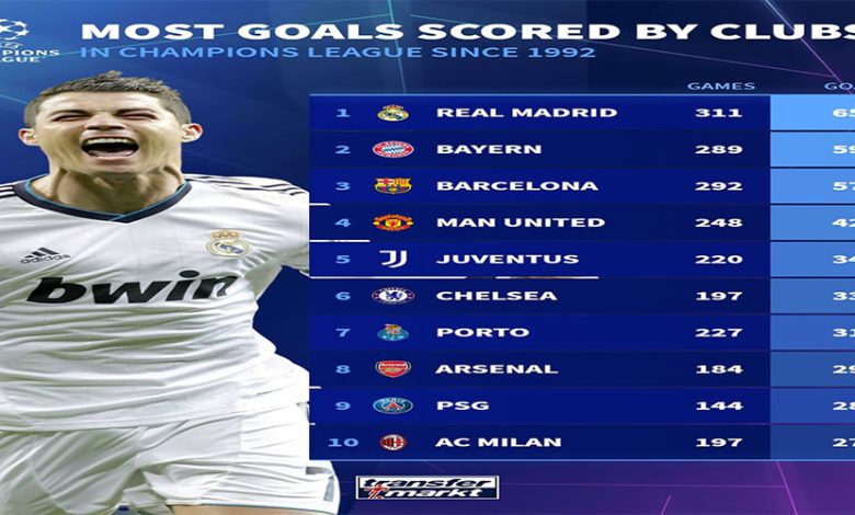 ۱۰ تیم با بیشترین گلهای زده در لیگهای معتبر اروپایی؛ بارسلونا در صدر، رئال مادرید در رتبه چهارم